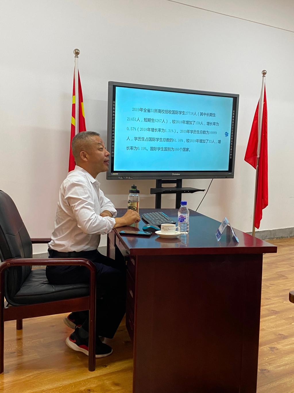 沈阳航空航天大学国际教育学院院长陈永庆老师与我院老师交流留管经验。