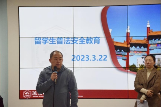会议就普法宣传、消防安全、反诈宣传、女性安全等方面对来华留学生进行了宣传教育。其中普法宣传教育以《中华人民共和国出境入境管理法》为基准,引用典型案例进行案例分析,加强警示教育,规范留学生日常行为;消防安全教育切实提高留学生消防安全意识,提醒留学生校外居家生活时注意用火用电安全,务必掌握基本的火灾应急知识和技能;反诈宣传教育向留学生普及新型网络电信诈骗的各种形式,以鲜活的案例提醒来华留学生注意防范电信诈骗,增强留学生的反诈意识;女性安全教育以座谈会的形式,就女性遇险自救、自尊自爱等问题提出了建议,增强女性的自我保护意识。