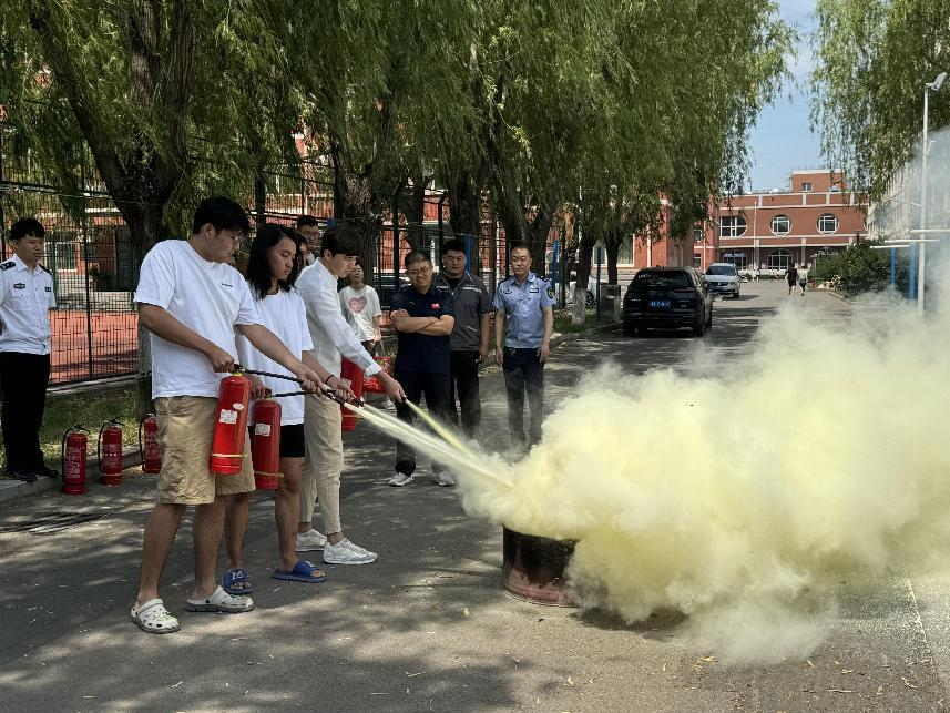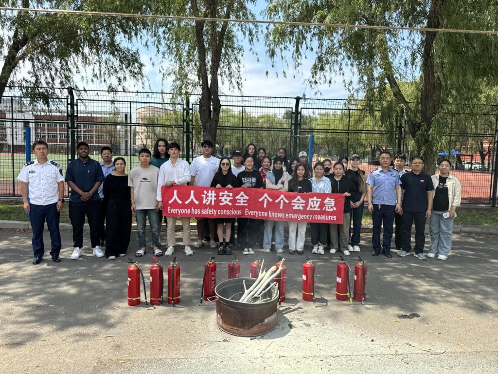 讲座结束后,保卫处消防科老师向来华留学生们展示了灭火器的使用方法,并邀请部分学生亲自操作体验。学生们纷纷拿起灭火器,对模拟火源进行扑救。通过实践操作,大家切实掌握了灭火器的使用方法。通过理论学习和实践操作,使参与者们掌握基本的消防安全知识和技能,确保校园安全稳定。
