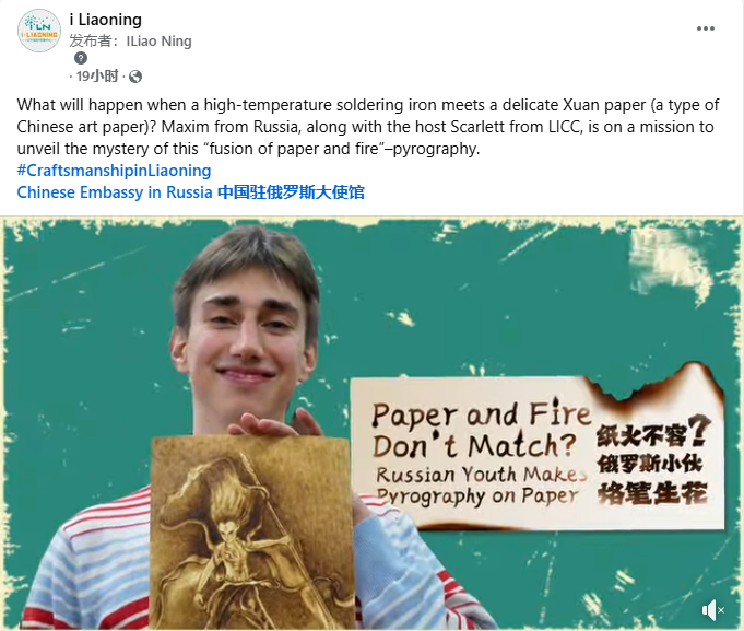 辽望客户端以《Paper and Fire Don’t Match? Russian Youth Makes Pyrography on Paper》(纸火不容?俄罗斯小伙烙笔生花)为题,对本次活动进行了报道,并同步发布于Facebook、Twitter等海外社交媒体平台,向世界展示中华优秀传统文化的独特魅力。