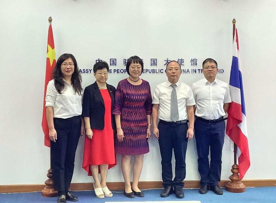 12月27日上午,杨学印一行拜访了中国驻泰国大使馆教育处教育参赞冯俊英和一等秘书王欢。双方就中泰教育合作发展的现状及泰国中文教育开展情况进行座谈交流。冯俊英参赞热情欢迎代表团一行的到来,并表示愿意为best365与泰国高校之间的合作交流提供支持与帮助,希望best365可以加强与泰国高校专业合作,吸引更多泰国学生到中国留学。