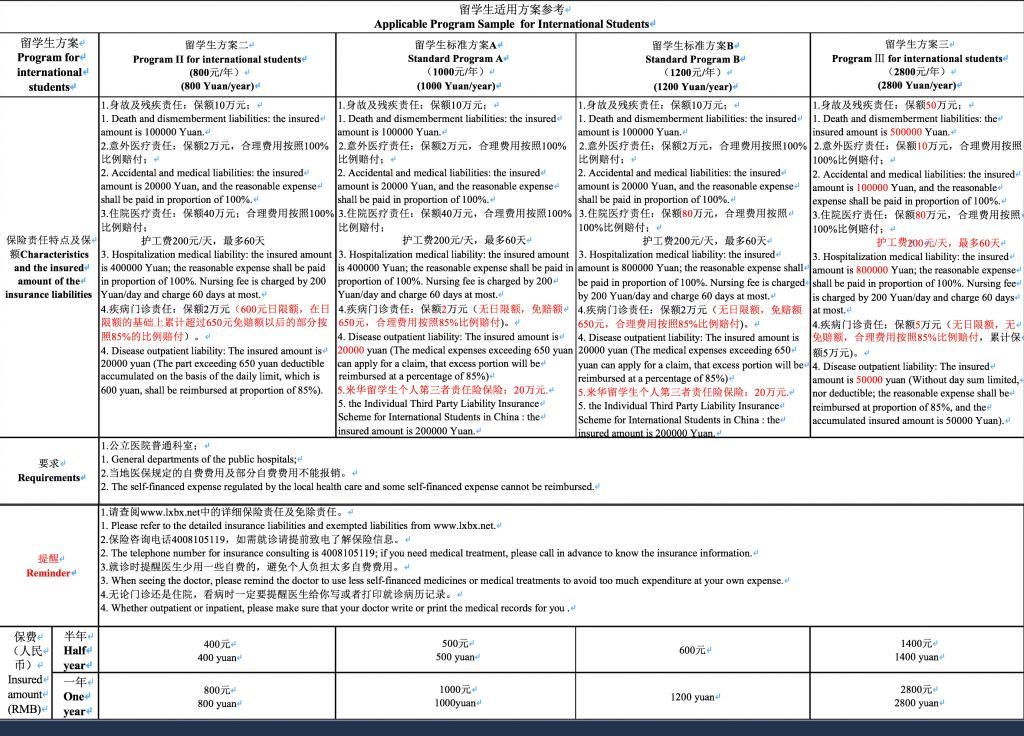 Applicable Program Sample for International Students