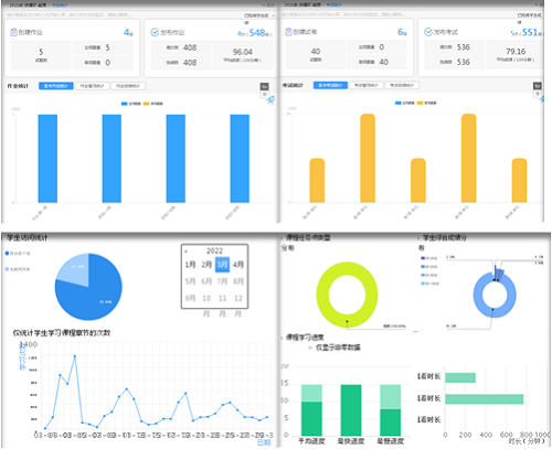 对于教师和学生在线教与学的表现,学习通进行了量化管理,以数据和图表形式呈现,供师生参考、反思和决策。