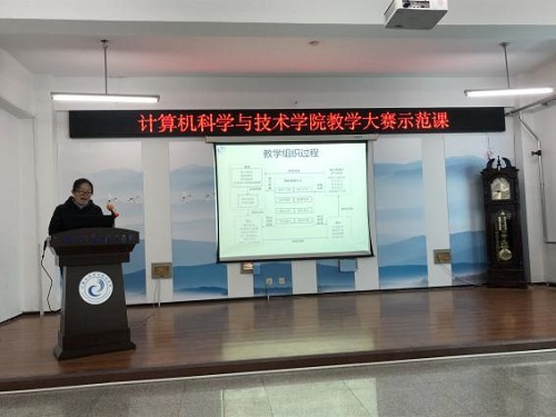 本科教学工作月期间,为进一步加强教师的执教能力,课程的教学如何进行设计以及如何将课程讲授得生动,帮助教师解决教学中遇到的实际问题,11月25日,在计算机科学与技术学院报告厅敲响了一场普通却又与众不同的示范课上课的铃声。