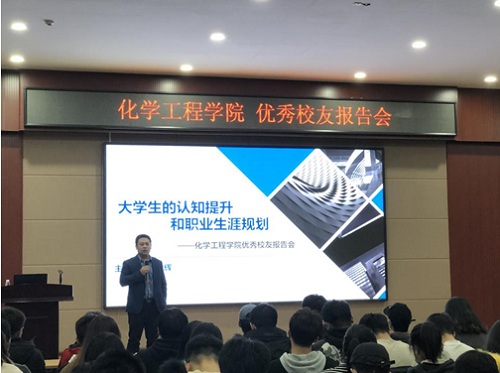 近日,化学工程学院在青年之家举办了“化说初心,工成梦想”之大学生的认知提升和职业生涯规划为主题的优秀校友报告会。优秀校友报告会是“本科教学工作月”期间化学工程学院本科生教育培养成效、成果展示系列活动之一。该系列活动旨在通过邀请学院各专业取得杰出成就的本科毕业生回校报告,激发本科生的自信,使其以更饱满的热情投入到学习生活中,同时为学院的深化教育教学改革奠定基础。