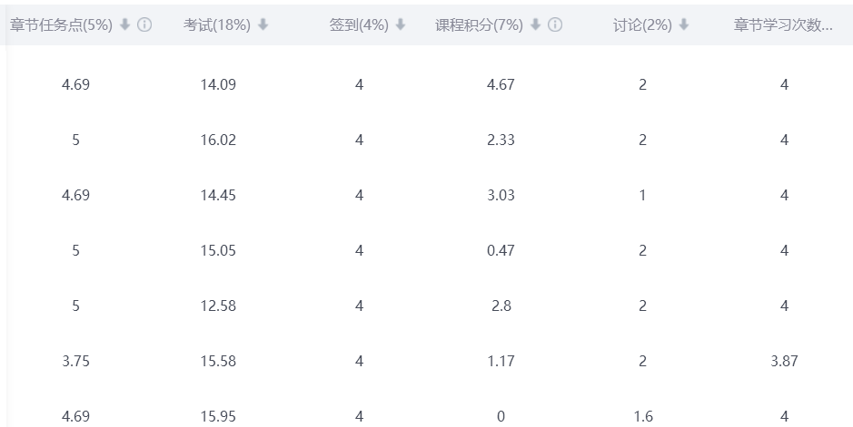课堂积分(7分):将课堂学习的重点和难点分解为课堂练习,学生在课堂上积极完成教师布置的课堂练习,考查学生对课堂内容的理解程度。由平台自动分析并获得相应分数。