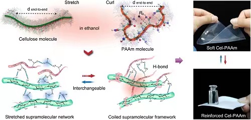 图2 可逆的超分子构型策略及开发的智能Cel-PAAm材料(Advanced Materials,2107857)