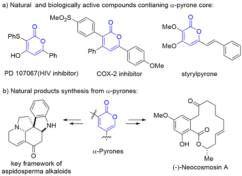 2-吡喃酮是一类重要的杂环骨架,广泛存在于许多天然产物和生物活性分子中。此外,2-吡喃酮也可作为中间体用于天然产物和药物的合成。因此,发展高效合成2-吡喃酮衍生物的方法一直是有机合成领域的研究热点。