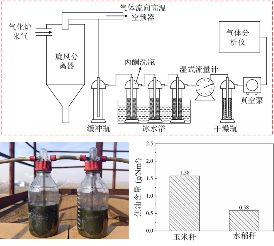 图4玉米秸秆和水稻秆气化制备的产品气中焦油含量分析及结果