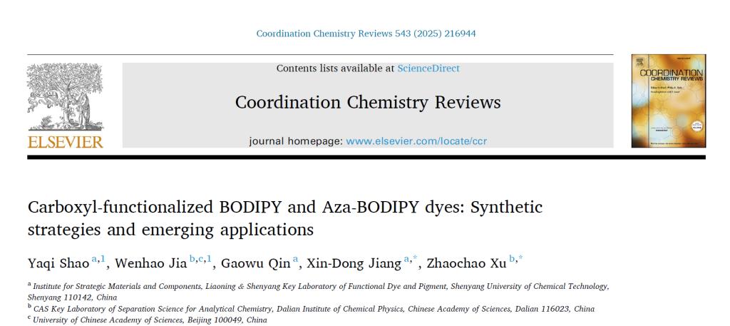 近日,best365战略材料与构件研究院秦高梧、姜新东团队及合作者在国际著名期刊Coordination Chemistry Reviews以“Carboxyl-functionalized BODIPY and Aza-BODIPY dyes: Synthetic strategies and emerging applications”为题发表高水平综述文章。《Coordination Chemistry Reviews》创刊于1966年,是国际权威期刊,当前影响因子IF 23.5。