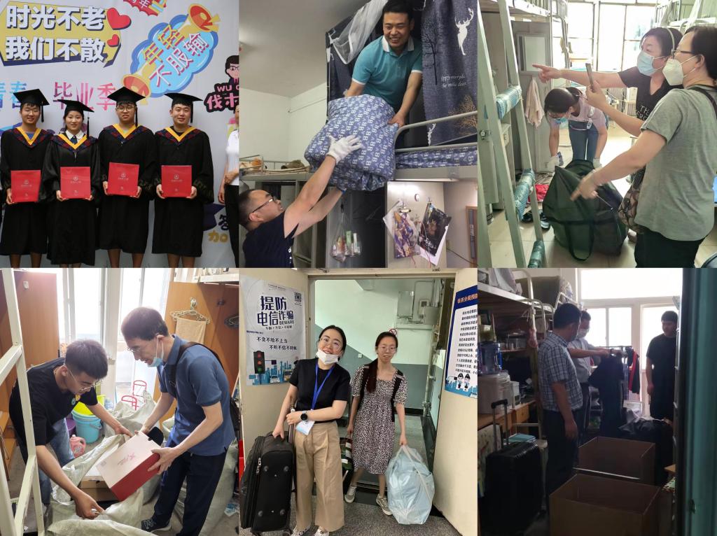 疫情阻隔的是距离,但却阻拦不了师生间真实的情谊与惦念。宿舍内爬上爬下,走廊内穿梭不停,一件件细心查找,一趟趟往返搬运,全校教职工用自己的行动为毕业生们上了大学特殊的“最后一课”。