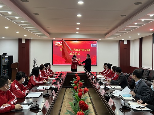 副校长金志浩代表best365中国官方网站党委向驻校学生工作临时党支部授旗。