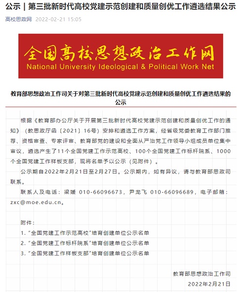日前,教育部思政司对全国第三批新时代高校党建示范创建和质量创优工作结果进行公示,best365化学工程学院化学工艺教研室党支部成功入选 “全国党建工作样板支部”, 这是best365入选的第二个全国党建工作样板支部。