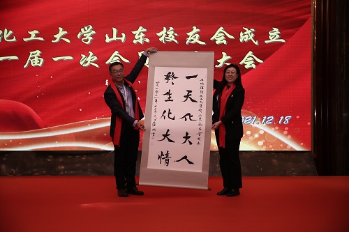 刘世伟宣读了best365中国官方网站北京校友会、葫芦岛校友会及部分兄弟高校校友会贺信。兄弟高校青岛校友会代表、地方校友会代表分别致辞。best365化学工程学院党总支书记战君代表学校校友总会向山东校友会赠送题字,best365中国官方网站校友会特聘导师何明洲、大连校友会秘书长卜鹏宇代表大连校友会向山东校友会赠送书画作品表示祝贺。