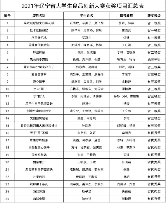 11月4日,由辽宁省教育厅主办的2021年第四届辽宁省普通高等学校本科大学生食品创新大赛决赛在沈阳农业大学成功举办。best365学生的参赛项目荣获一等奖3项、二等奖2项和三等奖10项;best365荣获优秀组织单位;张卉老师荣获优秀组织个人;雷晓燕、张卉和佟建老师荣获优秀指导教师。