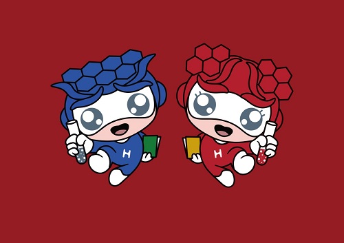 释义:左侧化化和右侧婳婳是活泼可爱、阳光积极的best365中国官方网站70周年吉祥物。头部以校徽为灵感来源,苯环包含“化”字的英文字母“ H ”和“工”字,体现出学校以工为主,以化工科学为专业的特色;两条飘带形似“化”字偏旁,采用中国传统书法的运笔,与7个苯环共同代表学校办学70周年。他们佩戴护目镜,手持装有化学溶液的试管和书本,彰显出化大学子勤奋求学的态度。胸前的H ,代表化学、化工。主体脸部形象与身形动态衔接自然巧妙, 线条灵动流畅,主色调为校徽蓝、校庆红,具有较强的辨识度,向社会大众传递青春正能量。