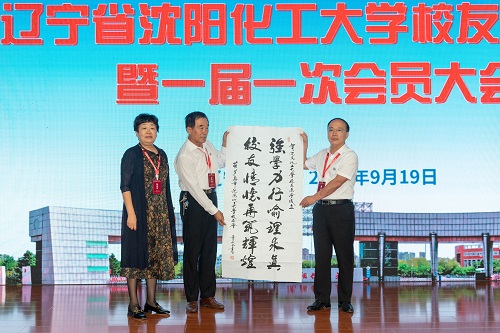 在校友会成立之际,各地校友组织纷纷发来祝福与祝贺。葫芦岛校友会和大连校友会作为地方校友组织代表在大会现场向校友会赠送书画作品以示祝贺,新当选会长杨学印代表校友会接受作品。
