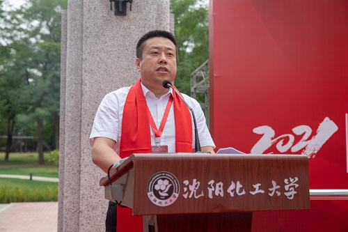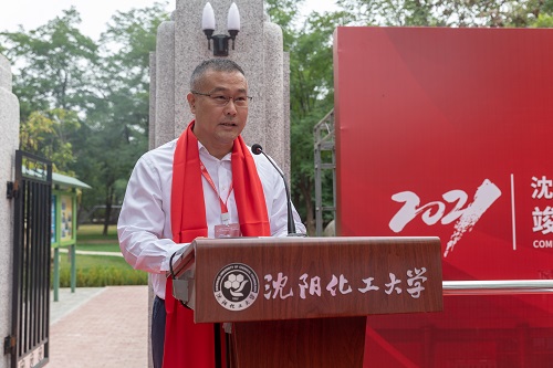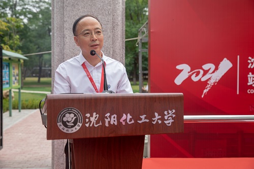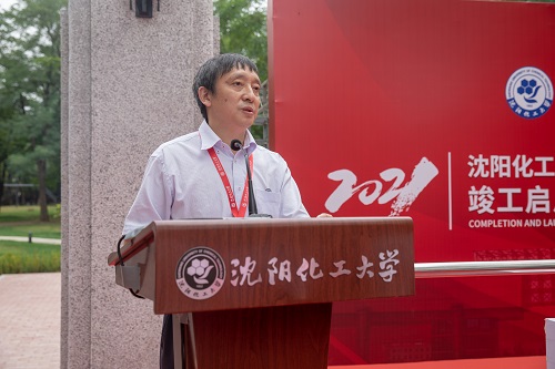 校长许光文作讲话。他代表学校向各位来宾表示热烈欢迎,向出资设计捐建“小院时光”的校友张连帅、郭斌以及赠送墙体红砖的奉天工场文化产业园表示感谢。他回顾了学校从1952年的化工小院到如今蒸蒸日上的化大发展历程。他表示,明年化大将迎来建校70周年,学校将逐步开展“七大工程”及一系列庆祝活动,全面展现办学成果和师生校友良好精神风貌,宣示学校建设高水平教学研究型大学的信心和决心。他指出,“小院时光”的竣工启用拉开了建校70周年系列活动的序幕。他希望广大校友一如既往地关心和支持母校建设发展,学校将以建校70周年为契机,不断完善校友组织体系、搭建服务校友工作平台、丰富校友活动内容载体,构筑校友与母校的学术共同体、发展共同体、事业共同体、命运共同体。