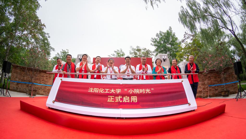 仪式最后,校领导王强、许光文,捐建校友代表张连帅、郭斌,校园景观石捐建校友何明洲,捐资设立奖学金校友孙江燕、赵勇,校友号观光车捐赠校友姜文大、杨洪波,校友会注册资金捐赠校友段朝斌共同完成“小院时光”竣工启用。全体参会人员走进“小院”,漫步在“小院时光”,触摸化大发展的脉搏,找寻校友求学的时光。