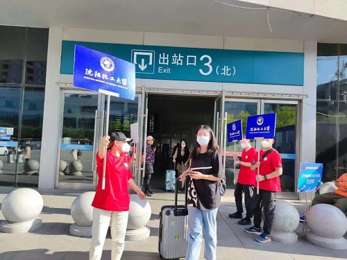 学校在报到口设置了等待区、核酸检测区、测温验证区、临时隔离区,新生在工作人员的引导下有序排队,凭核酸检测报告、入学通知书、身份证、辽事通健康码等,经过测温无异常后进入校园。