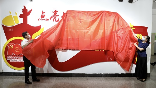 党委书记王强、纪委书记孟宪梅为党史学习教育基地揭牌。