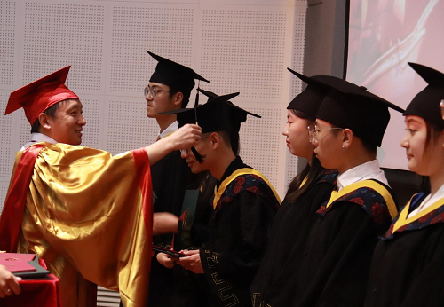 毕业典礼上,许光文校长为本科、研究生代表拨正流苏并颁发学位证书。许光文校长语重心长地表达了此时此刻欣慰又幸福的心情,他表示,2021届毕业生身处疫情防控的特殊时期下,能够圆满毕业,你们要为自己感到自豪,相信这个特殊时期赋予你们的素质是你们人生道路上难得的财富,使你们受益终生。许光文校长嘱咐毕业学子要认识到我们这一代青年身上时代赋予的重任,要永远保持青春活力,成为将来勇担社会责任的技术人才。最后,许光文校长寄语化学工程学院2021届毕业生不负韶华,牢记母校的嘱托,为祖国、为人民作出更大的贡献,成就自己伟大、幸福、成功的人生。