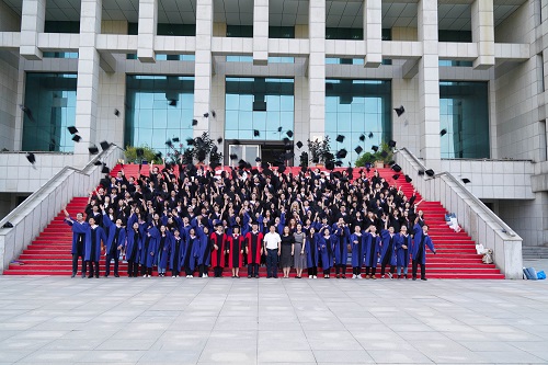 在庄严的国歌声中,典礼正式开始。支朝辉、赵美娜分别代表研究生和本科毕业生上台发言。在感谢恩师与同学之余,他们满怀激情地表示,无论去向何方,有何际遇,自己在未来将一直关注母校的蓬勃发展,也将时刻谨记“强学力行,喻理求真”校训,不忘初心,砥砺前行。