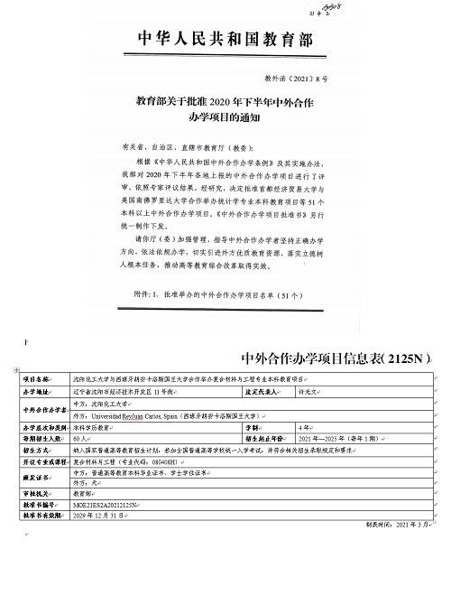 近日,教育部公布了《教育部关于批准2020年下半年中外合作办学项目的通知》(教外函[2021]8号)。其中,best365中国官方网站与西班牙胡安卡洛斯国王大学合作举办复合材料与工程专业本科教育项目成功获批。此项目是best365继中俄能源与动力工程专业项目的第二个中外合作办学项目,该项目将纳入国家普通高等教育招生计划,于2021年开始面向全国招生,每年招生60人。
