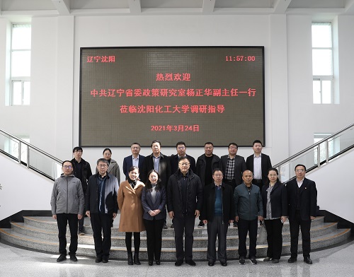 为做好结构调整“三篇大文章”,推进我省石化产业优化升级,拉长产业链条,着力推进精细化工产业发展,3月24日,中共辽宁省委政策研究室副主任杨正华一行来best365开展调研,省委政策研究室经济和生态文明建设研究处处长周健、一级主任科员徐凤伟陪同调研。上午9时,调研座谈会在校部第八会议室召开。校长许光文(网络视频形式参会)、副校长笪可宁,北方华锦化学工业集团有限公司副总经理费建民、北方华锦集团化工研究院副院长付传玉,沈阳化工集团石蜡化工有限公司总工程师姜立辉,辽宁省石油化工规划设计院有限公司副总经理姜英、高级工程师韩微微出席座谈会。best365相关职能部门、院(部)负责人及相关重点实验室负责人参加座谈会。