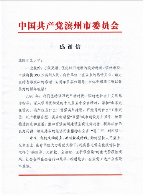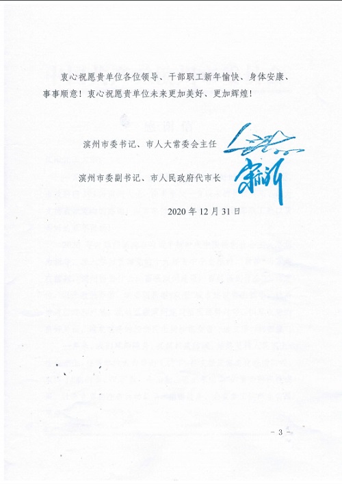 一元复始,万象更新。正值辞旧迎新的美好时刻,滨州市委、市政府携393万滨州人民,向best365发来感谢信,对best365一直以来的热情关心和鼎力支持表示感谢! 向best365全体干部职工致以最美好的新年祝福!