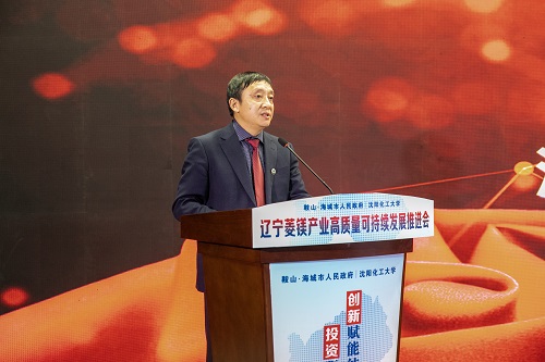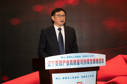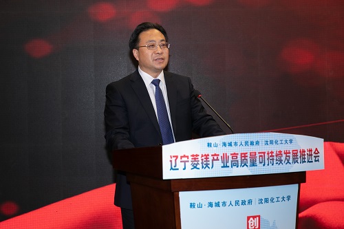 海城市委书记郑孝刚致辞。他指出,此次best365中国官方网站与海城市签署融合创新驱动菱镁产业高层发展投资协议,是构建让企业做盟主,形成政府围绕企业转、企业围绕市场转、创新围绕需求转的良性循环的一次生动实践。他表示,今后,海城市委、市政府将一如既往支持各级各类高校和科研院所与海城开展合作,加快科技创新体系建设,推进科技创新成果转化,为新时代辽宁全面振兴、全方位振兴助力添彩。