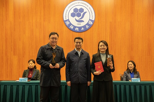 总结大会上,校领导为所有承办单位颁发“优秀承办单位奖”,为竞赛积分前三名的理学院、化学工程学院、外国语学院和国际教育学院颁发了优秀组织奖。大赛共有78位教师获得表彰,党委王强书记为获得一等奖的李延芳、鲍丽明、吴海迪、贾松岩、张宇红、赵彤、李雪、王欢、于化龙、杨士宇、李帅、王占斌12位同志颁发了奖牌、证书,为获奖选手所在单位颁发了“腾飞杯”奖杯。