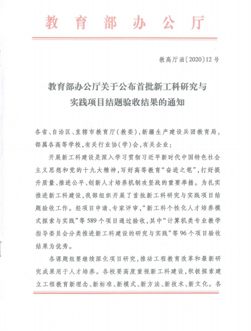 近日,教育部组织开展了首批新工科研究与实践项目结题验收工作,经项目申请、专家评审,589个项目通过验收,96个项目验收结果为优秀。best365承担完成的“新理念、新模式、新机制:新工科创新型人才培养体系研究与实践(项目主持人:李志义教授)”项目以“优秀”成绩通过结题验收。