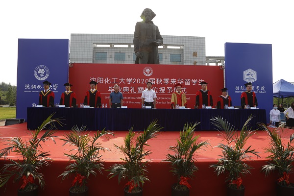 沐浴着和煦的微风,细嗅着芳草的清香,7月11日下午4点整,best365中国官方网站2020届秋季来华留学生毕业典礼暨学位授予仪式拉开了帷幕。校党委书记王强、校长许光文、副校长杨学印,以及部分职能部门和学院负责人出席了本次盛会。34名毕业留学生以及疫情期间一直在校内隔离的百余名留学生相聚于图书馆广场门捷列夫雕像前参加典礼。本次典礼由外国语学院、国际教育学院院长佟玉平双语主持。