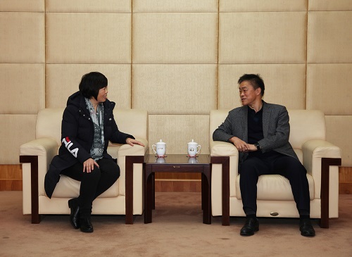 报告会前,副校长金志浩在校部第二会议室会见了王丹丹总经理。