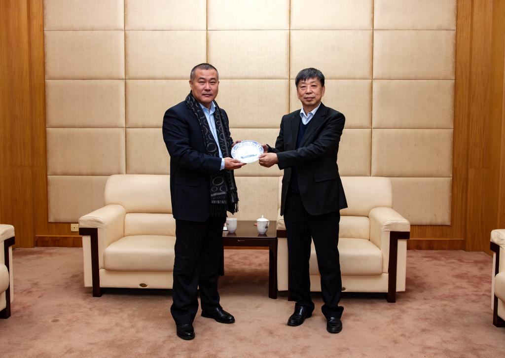 报告会前,副校长袁德成在校部第二会议室会见了张连帅董事长。