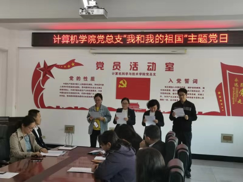 计算机科学与技术学院学生党支部现有党员21人,其中教工党员4人,学生党员17人。学生党支部对照“七个有力”的标准要求,持续推进“两学一做”学习教育常态化制度化,紧密围绕立德树人的根本任务,以习近平新时代中国特色社会主义思想和党的十九大精神为指引,积极开展“不忘初心、牢记使命”主题教育学习活动,认真落实“三会一课”制度,充分发挥学生党员在思想引领、学风建设和学生管理中的先锋模范作用。