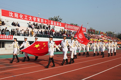 迎着秋日的曙光,各代表方队伴随着激昂奋进的《运动员进行曲》依次入场。身着白色制服的国旗护卫队首先入场,他们迈着矫健而整齐的步伐向师生们展示了英姿飒爽的风采。各院系代表方队结合院系特色,以变化多样的队形和表演向新中国成立70周年献礼,展现化大人的风采。化学工程学院迈着铿锵有力的步伐,高举着“共铸辉煌七十载,同庆祖国万年春”的条幅,高喊“化工如龙,气贯长虹;化工腾飞,大展雄威”的口号;能源动力与工程学院以整齐的方阵展现着能动学子“能源不断、动力无限”的气势及拼搏奋斗的精神;环境与安全工程学院的师生们拼出70字样,表达着礼赞新中国、奋斗新时代的坚强决心;应用技术学院学生举着巨大的国旗,表达了对国家70华诞的祝福;国际教育学院的留学生们用流利的中文高喊:“发展体育运动、增强人民体质;好好学习、天天向上”,为运动会注入国际化的元素;机关代表队以整齐的方队,高举“爱在祖国、家在化大;阳光机关、暖心服务”的宣传板,展现出立足本职岗位,服务全校师生的理念;体育系精彩的武术表演展现着体育系的运动精神,再一次燃起师生对体育的热情……创新的表现形式、饱满的运动热情,彰显着化大人与新中国共铸辉煌70载,敢于突破、勇于进取的精神风貌,体现了化大师生敢为人先、聚力发展的胆略和气魄。