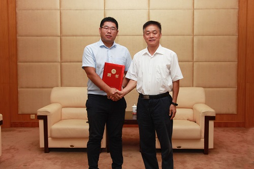 报告会前,副校长金志浩为衣运通总经理颁发了创新创业导师聘书。
