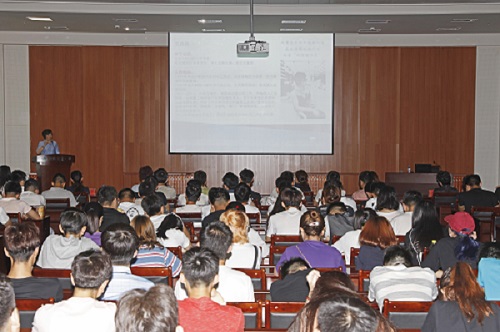 王丹丹总经理以丰富的事例,雄辩而又风趣的语言为同学们上了一堂精彩的未来职业规划课,不时地赢得同学们的阵阵掌声。学生代表为王丹丹总经理献上了一束鲜花。