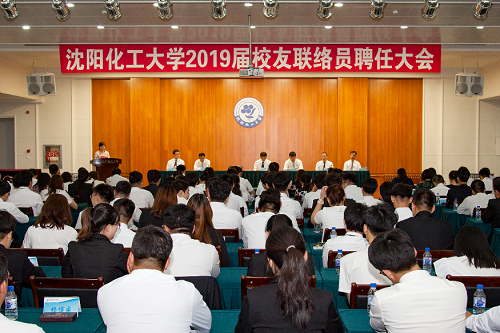 副校长金志浩,党委委员、党委宣传部部长肖于波,党政办公室主任赵实,教务处处长于三三,招生与就业工作处处长王成家,学生处处长姜维,校团委书记刘飞为124名2019届校友联络员颁发了聘书。