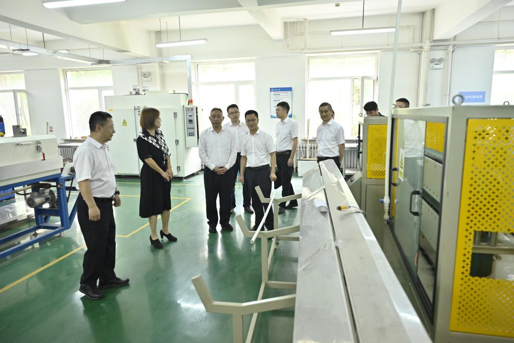 座谈会前,来访一行在校长许光文和相关部门人员陪同下,现场调研了高分子材料成型加工实训中心、辽宁省高功能高分子薄膜工程研究中心、资源化工与材料教育部重点实验室。