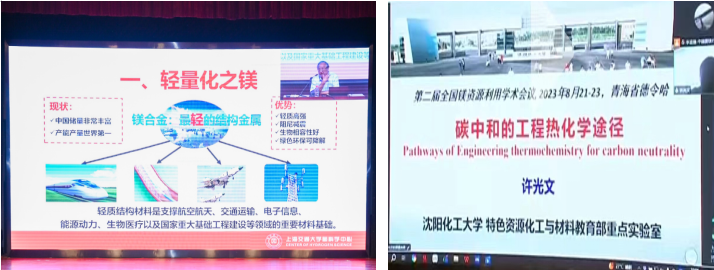 丁文江院士在报告中指出,镁在氢能领域应用包括镁材料与新能源汽车轻量化、镁材料与氢气净化储运一体化、镁材料与氢能源动力系统。镁合金也可以用来做生物材料,未来在国防军工、交通工具、生物医药、能源环境、绿色农业和更多未知领域还会大有可为。许光文校长的报告指出,“工程热化学”致力于在从反应到反应器、再到工业过程的不同尺度上保障热与反应、能量与物质的优化匹配,实现工业过程的消耗最少、排放最低、产出最大的可持续目标,并深入分析了实质性贡献我国“碳中和”目标,达成年数十亿吨规模碳减排、碳替代和碳循环的工程热化学途径。