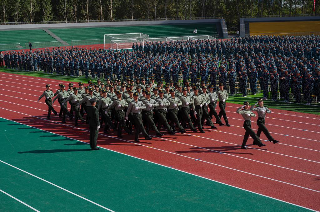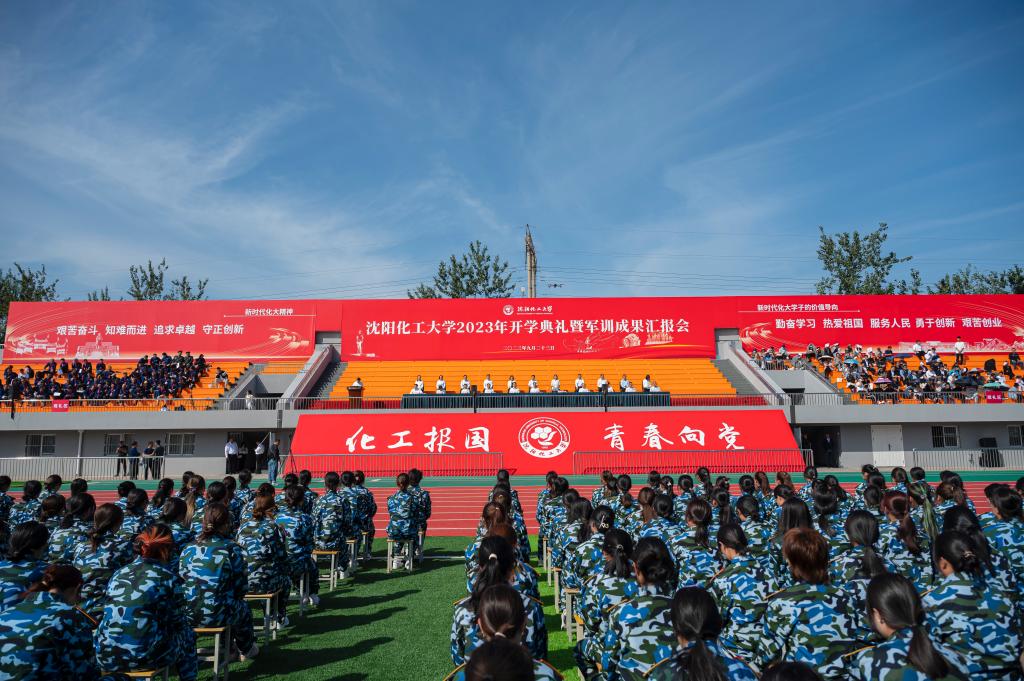 开学典礼前,举行了军训成果汇报会。各学院军训方队身穿戎装、英姿飒爽,进行了精彩的队列表演。同学们精神饱满、步伐整齐、口号嘹亮,充分展示出化大青年学子昂扬向上的精神风貌和青春风采,彰显出拼搏奋斗的精神和“化工报国”的理想信念。