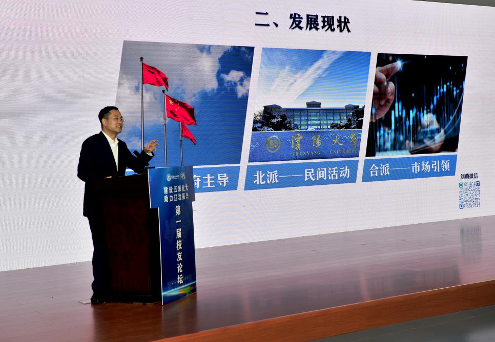 沈阳市委副书记王永威以《遇见沈阳 共赢未来》为题作沈阳市城市推介。他详细介绍了沈阳发展定位、重点产业链集聚、创业政策、城市活力等内容,并诚邀校友们与辽宁、沈阳振兴发展同向同行、携手并肩。