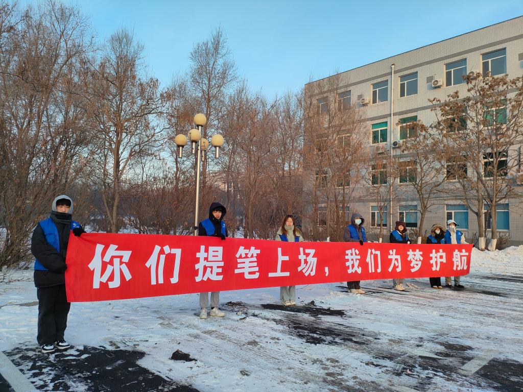 暖心服务、关爱考生。在降温的极端天气下,学校组织师生志愿者帮助考生存放物品、设置茶水间免费提供热饮、打印准考证。同时,通过发送天气提醒、考点考前提示、做好考前准备工作等举措加强考生赴考提醒;提前绘制考点考场示意图、场外楼层指引图、楼内楼层指示图,节约考生到达考点时间;在考场附近的图书馆等楼宇设立候考等待区,方便早到的考生休息或学习。校园内随处可见“考研加油”的条幅也给考生们留下了深刻的印象。“看到这些标语都感觉到有很多人在默默支持我,让我放松不少,学校的人文关怀让我感到很温暖。”参加考试的考生纷纷表示。