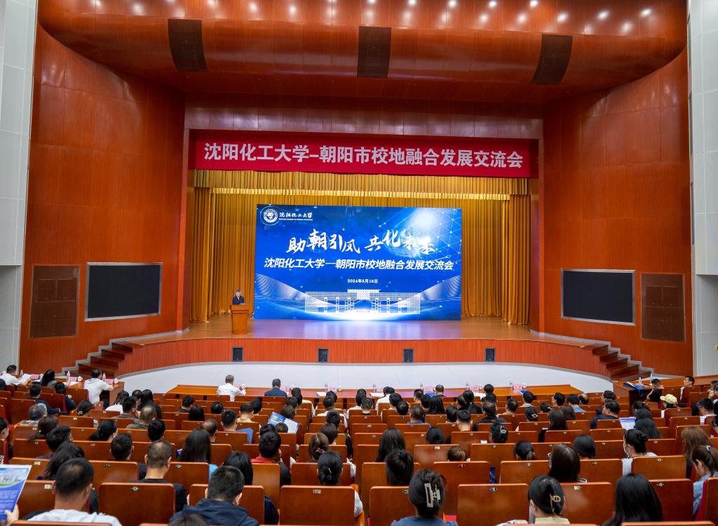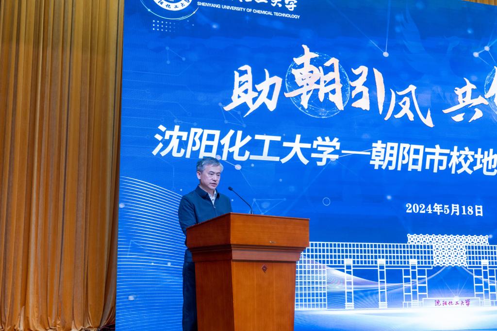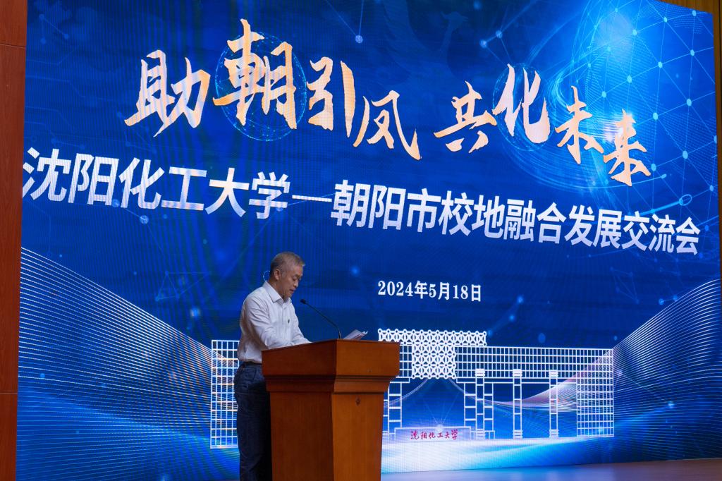 许光文作校地融合发展主旨宣介。他以《认识化工 笃定选择 逐梦青春卓越 增添成长力量》为题,从“了解72载沈化”“认识美丽化工”“化大‘化’朝阳”三个方面进行宣介。就“了解72载沈化”,他讲述了学校因化工而建、因化工而起、因化工而兴的办学历程以及近年来学校在教育教学、科技创新、学科建设、人才培养、服务社会、国际合作等各方面取得的成就。就“认知美丽化工”,他讲述了中国化工百年的光辉历程及中外领袖人物和科技人才,并表示要肩负“双碳”战略的化工责任,聚焦辽宁振兴、聚焦区域发展、建设美丽中国。就“化大‘化’朝阳”,他希望双方聚焦区域发展,进一步加强拓源引才合作水平,助力朝阳构建具有特色优势的现代化产业体系,深入实施创新驱动发展战略,为打好打赢新时代东北振兴、辽宁振兴的“辽沈战役”作出更大贡献。他诚挚地期待更多青年进入化大!