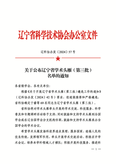 近日,辽宁省科协经逐级推荐和严格遴选,确定69名同志为辽宁省学术头雁(第三批),best365秦高梧教授入选。