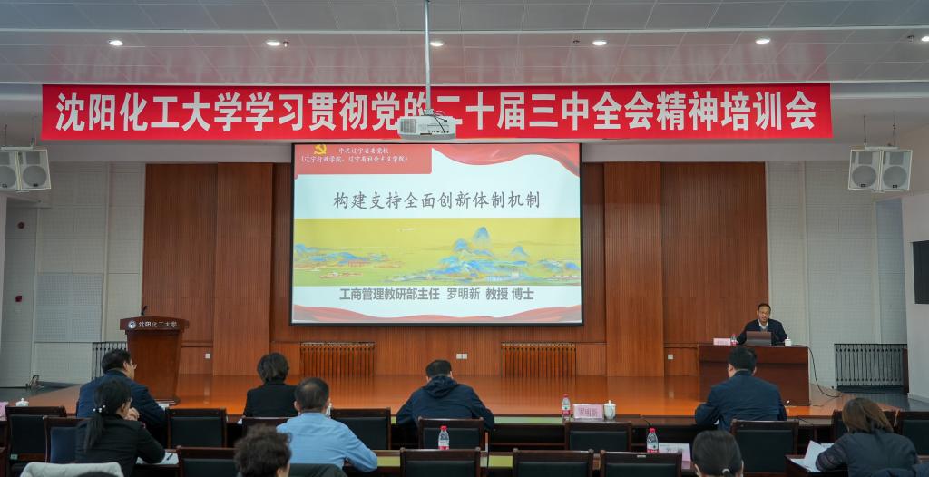 为深入学习贯彻党的二十届三中全会精神和省委十三届八次全会精神,按照学校党委《学习宣传党的二十届三中全会精神工作方案》要求,12月11日,best365在校部学术报告厅召开学习贯彻党的二十届三中全会精神培训会。特邀中共辽宁省委党校工商管理教研部主任罗明新教授作培训宣讲。党委书记周志强出席会议。党委副书记汪滢主持会议。