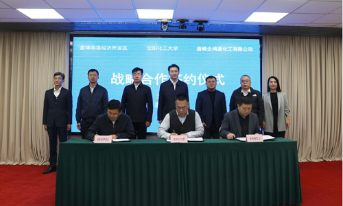秦高梧作讲话。他指出,盘锦市是国务院批复确定的中国重要的石油、石化工业基地。大洼区是辽河油田主产区,地理位置优越,化工产业发展蓬勃。盘锦企鸿源化工有限公司作为校友企业,是大洼区石化行业的龙头企业。best365中国官方网站作为国家最早在东北地区设立的化工类高校,始终致力于推动辽宁化学工业的高质量发展,并为盘锦化学工业建设和企业发展输送了大批人才。他相信,通过三方的携手努力,一定能够在创新平台建设、化工设备改造及加工和综合实训基地建设等领域的合作实现新突破,并促进区域内传统主导产业加快结构调整和优化升级,为大洼区扎实推进工业强区建设和中国北方(盘锦)船用燃料生产基地打造提供强大的动力。